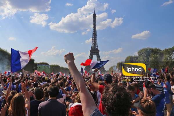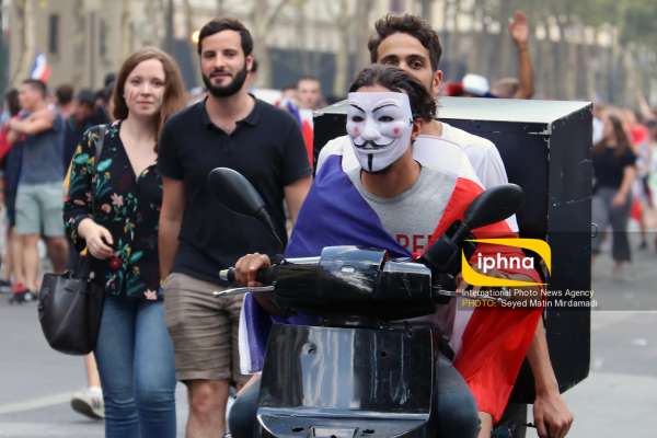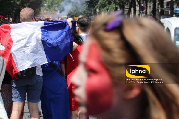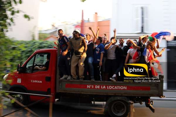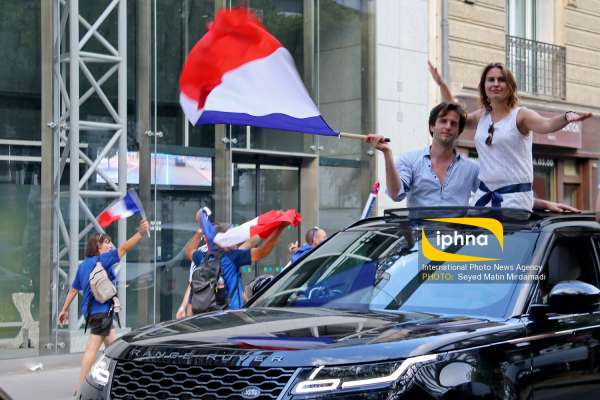 شادی مردم فرانسه همزمان با قهرمانی تیم ملی فوتبال فرانسه در رقابتهای جام جهانی 2018 روسیه در شهر پاریس