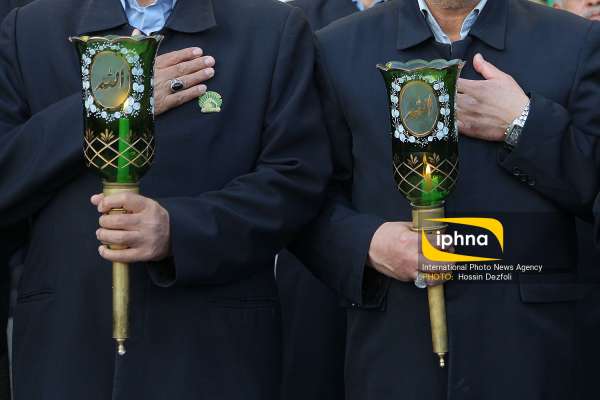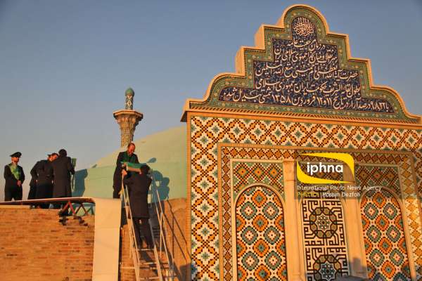 آیین تعویض پرچم گنبد حرم حضرت عبدالعظیم حسنی