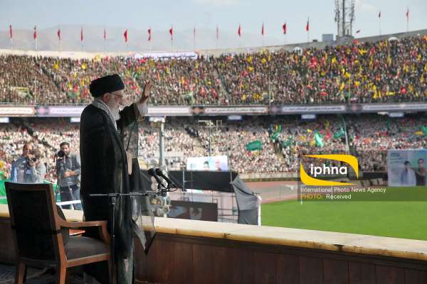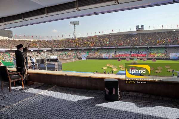 The great gathering of "The Service by Mobilized Forces" where tens of thousands of Basij members (Mobilized Forces) from Tehran Province have come together commenced at Azadi Stadium earlier today. Ayatollah Khamenei is delivering a speech to the audience at this moment