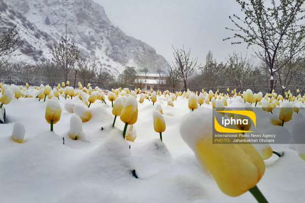 باغ لاله گچسر در کیلومتر 52 جاده چالوس بعد از بارش برف در بیست و هفتمین روز از بهار