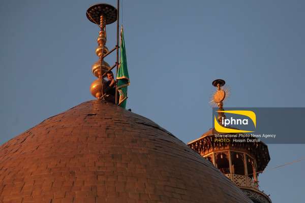 آیین تعویض پرچم گنبد حرم حضرت عبدالعظیم حسنی